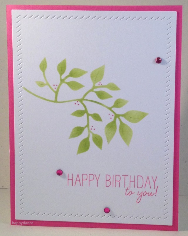 Above you can see Anita's card. I love the embossing folder she's used on her card. I didn't have one that tripped my trigger, so decided not to use one. And I flipped my sponged branch, went with a smaller sentiment, and added a few blings. I like the way it turned out, and was happy to play along this time. Studio G inks, and an AE die cut. The branch was the remains of a Sizzix die, which NEVER came out right; I always ripped the leaves or stems...so I tossed it out, but decided to keep the negative and use it as a stencil. My dots were made with an SU marker. And that's it for now. Won't keep you, but will wish you the blessings of the day.